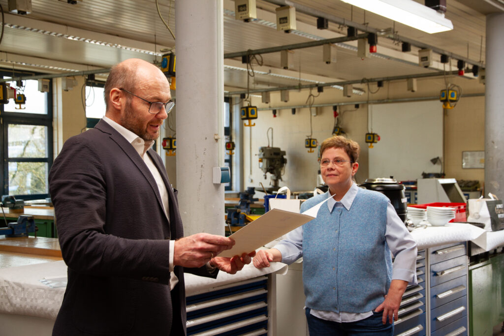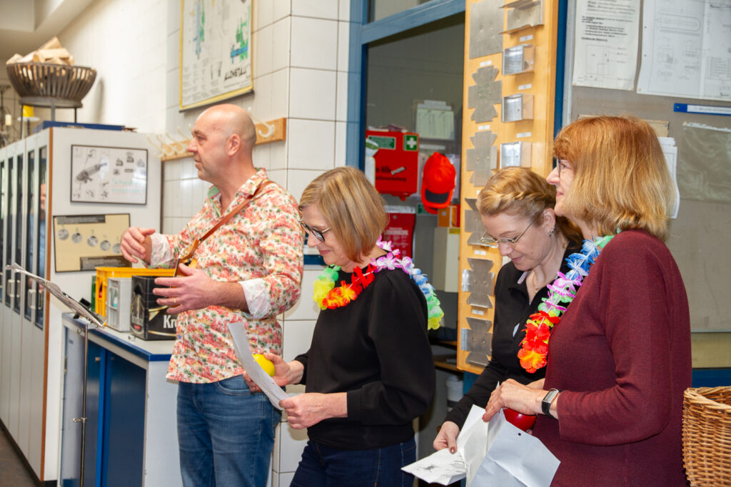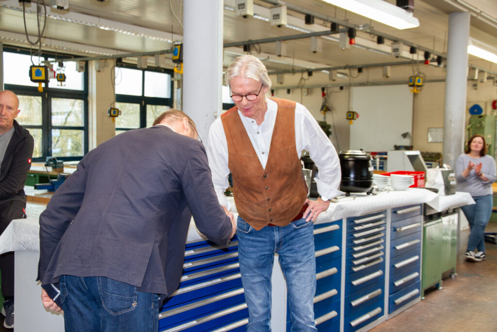 Mit einer fröhlichen und doch angemessenen Feier in der Metallwerkstatt, der Wirkungsstätte von Holger Krumme, verabschiedete sich das Kollegium von den drei Ruheständler*innen. Schulleiter Jürgen Artmann übergab im feierlichen Teil des Abschiedes die Urkunden und im Anschluss fanden auch einige Kolleg*innen noch warme Abschiedsworte bevor es dann eine Stärkung für das leibliche Wohl gab.
