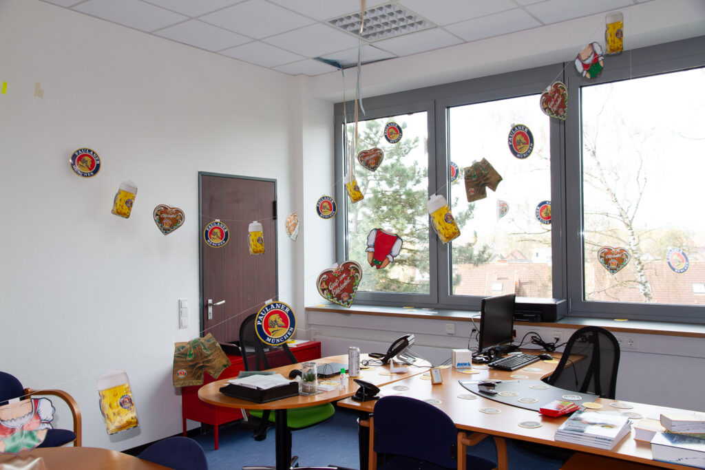 Im Gebäude hat die Klasse TBO, das sind unserer Abiturienten, dann verschiedene Klassenräume und die Büros der Bereichsleitungen zu Partyräumen umgestaltet. Hiermit wollten Sie den Grund zum Feiern und ihre Freude über die Zulassung zum Abitur unterstreichen. Und diese Zulassung haben dann auch alle Kandidaten bekommen. Jetzt steht den jungen Männern eine intensive Zeit der Vorbereitung vor, damit die nächste große Feier, die Vergabe der Abiturzeugnisse auch gebührend gefeiert werden kann. Wir wünschen bei den anstehenden Prüfungen viel Erfolg.