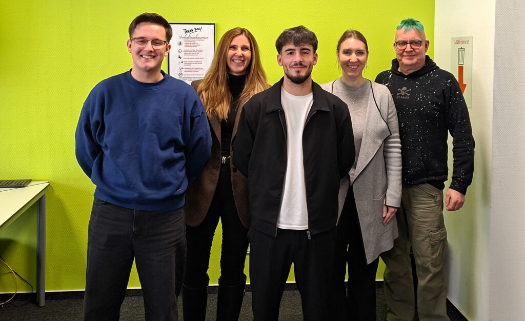 (vlnr) Edon Haxhijaha (stellv. Schülersprecher), Stepphanie Teriet, Moataz Ibrahim (Schülersprecher), Rebecca Marzoch und Wolfgang Kayser