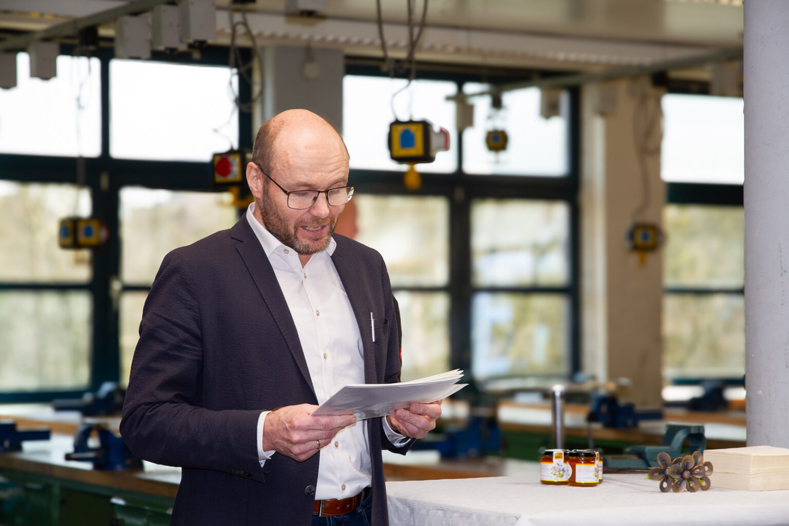 Mit einer fröhlichen und doch angemessenen Feier in der Metallwerkstatt, der Wirkungsstätte von Holger Krumme, verabschiedete sich das Kollegium von den drei Ruheständler*innen. Schulleiter Jürgen Artmann übergab im feierlichen Teil des Abschiedes die Urkunden und im Anschluss fanden auch einige Kolleg*innen noch warme Abschiedsworte bevor es dann eine Stärkung für das leibliche Wohl gab.