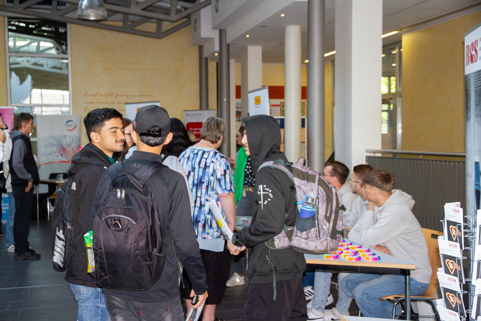 Diesen Rahmen der Vielfalt hat unsere Schülerschaft intensiv genutzt, persönlich mit den Vertretern der Unternehmen in Kontakt zu treten und sich über die verschiedenen Berufsmöglichkeiten zu informieren. Für die Unternehmen war es eine ausgezeichnete Gelegenheit in entspannter Atmosphäre sich zu präsentieren und für Ausbildungs- und Praktikumsplätze zu werben.