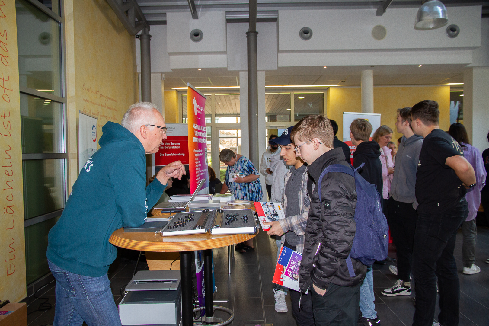 Das Freiherr-vom-Stein Berufskolleg Werne hat zum 24./25.09.2025 Unternehmen aus der Region zur Jobmesse eingeladen. 23 Unternehmen sind dem Ruf gefolgt. Vertreten waren die Branchen Industrie, Handwerk, Energie- und Wasserversorgung, Transport und Logistik, Einzelhandel sowie Gesundheits- und Sozialwesen.